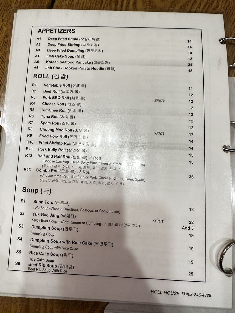 Roll House, a Korean restaurant located in Santa Clara, CA, offers a diverse menu with options for vegans and vegetarians. Known for their delicious kimbap, customers rave about the generous portions and fresh ingredients used. The fried shrimp roll and tofu soup are highly recommended for their comforting flavors. Despite some mixed reviews on service, the overall consensus is that Roll House provides solid, good food at a reasonable price. The cozy atmosphere and friendly staff make it a go-to spot for Korean cuisine enthusiasts. With menu items like rabokki and half and half gimbap, there is something for everyone to enjoy. So, if you're looking for a taste of Korean comfort food, Roll House is the place to go.